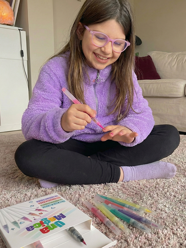 Sí. UnaMagica no requiere montaje ni preparación complicada.Solo hay que agitar el marcador, presionar la punta y empezar a crear. Está diseñada para que las niñas puedan usarla fácilmente, con la tranquilidad de las mamás.